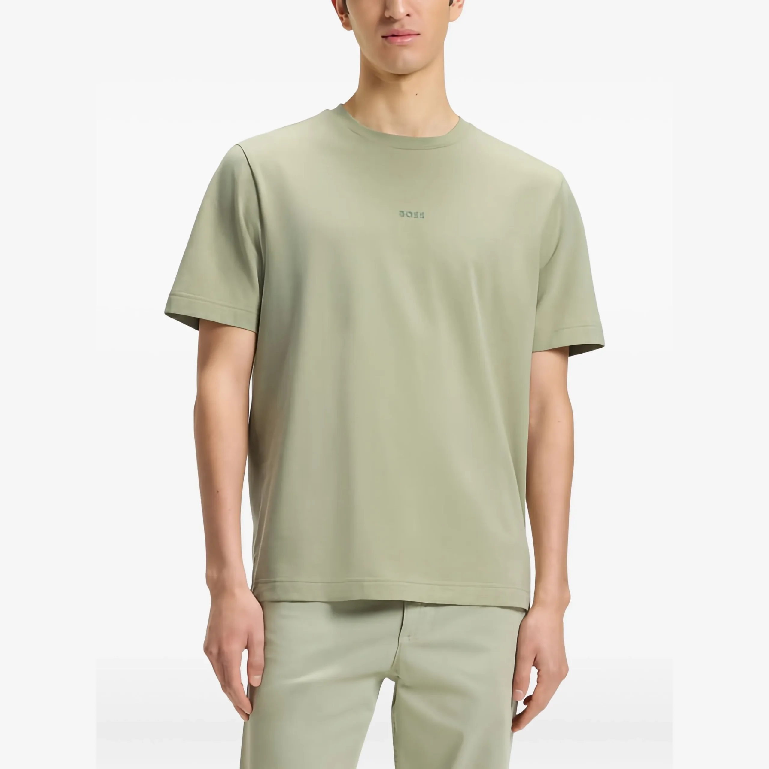 In cotton with added stretch for comfort, this BOSS Menswear T-shirt is printed with a centre-front contrast logo. Laid-back fit.