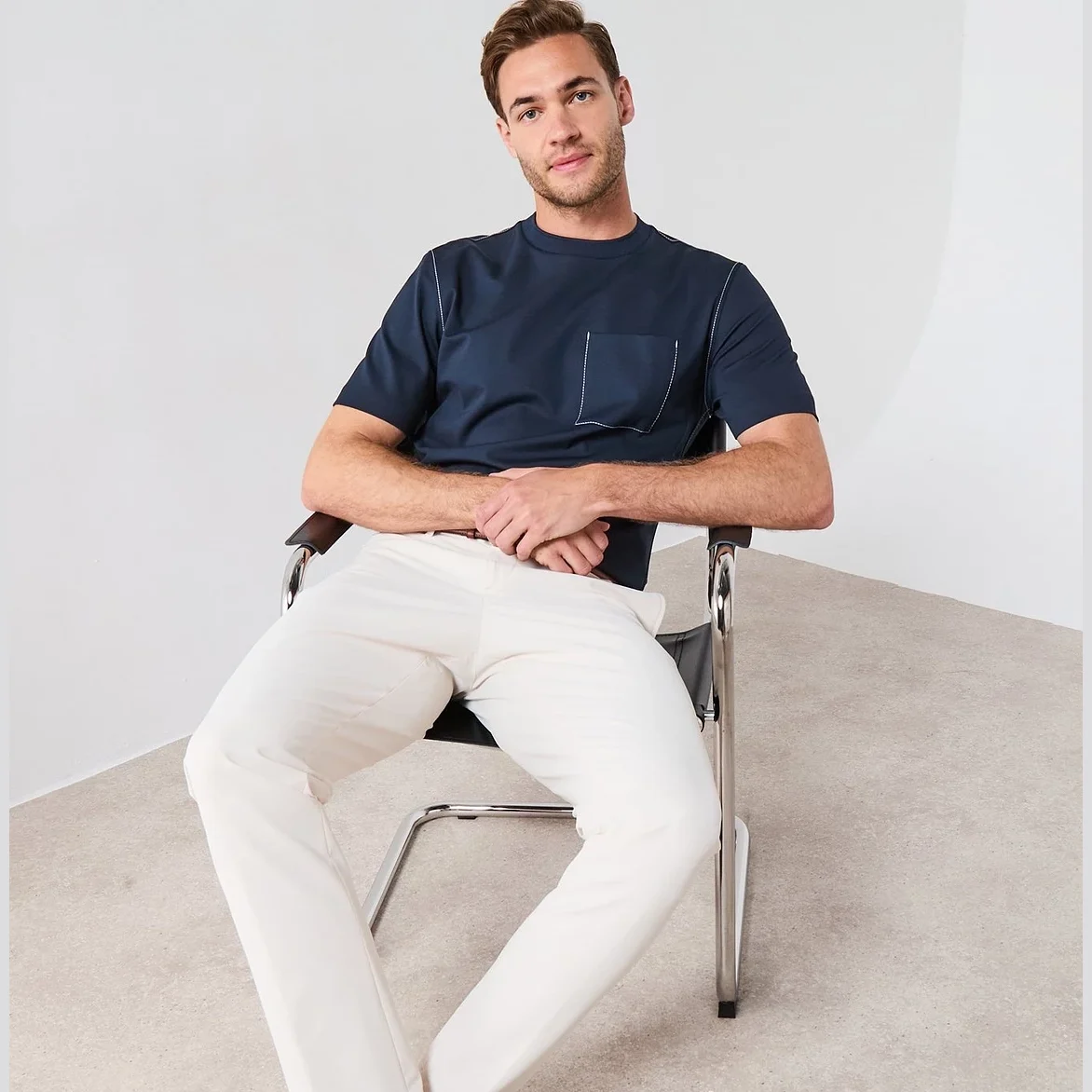 C-Taut 105 Regular Fit Contrast Stitched Pocket T-Shirt – Navy