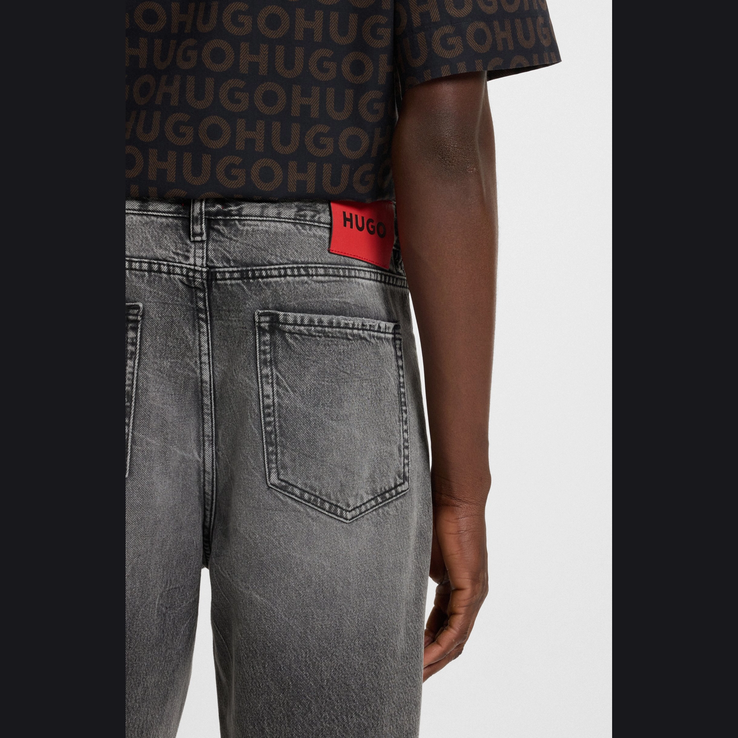 Cut to sit low on the hips, these tapered-fit HUGO Menswear jeans are a modern foundation. Weighty grey denim with soft used effects.