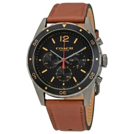 Coach Sullivan Chronograph Black Dial Brown Leather Strap Watch for Men – 14602070