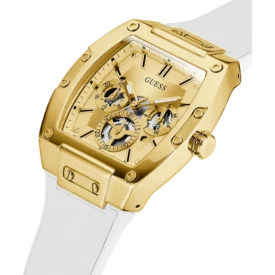 Original Guess Watch Phoenix for Men GW0202G6 With Gold dial Rubber Strap White color Belt Japanese Machine . With packing Guess ( Box + Bag )